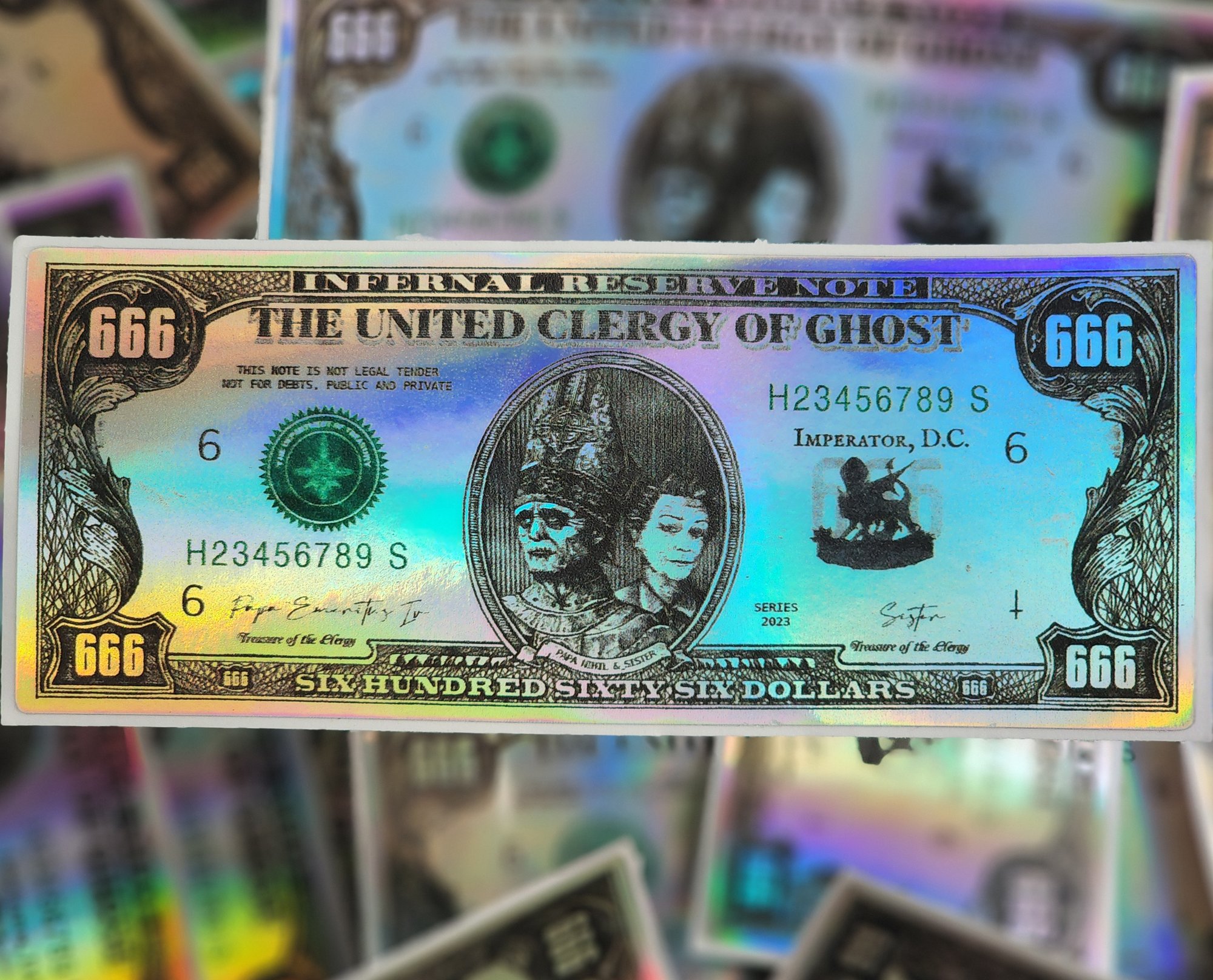 HAIL SATAN! These gorgeous holographic stickers based off mummy dust, normally acquired by attending rituals, gives fans an opportunity to bring home their very own.
